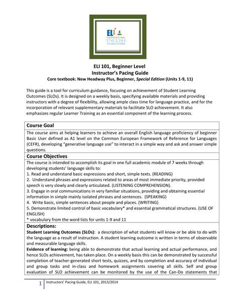 Best eli 101 beginner level instructor pacing guide Download EBook Sites No Sign Up - As we know, Download EBook is a great way to spend leisure time. Almost every month, there are new Ebook being released and there are numerous brand new Ebook as well.