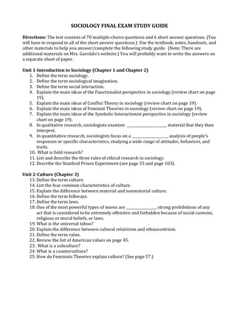Download sociology final exam study guide Doc